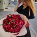 Шикарный букет из красных пионов