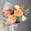 Авторский букет из роз и других цветов в дизайнерской упаковке
