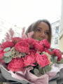Авторский букет из розы Пинк Охара, розовых диантусов и роз мондиаль в дизайнерской упаковке