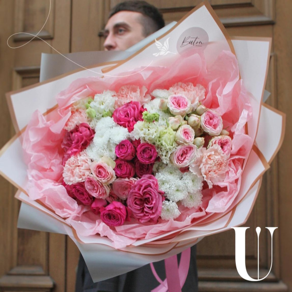 - Роза кустовая пионовидная, Бомбастик, нежно-розовая - 4 шт