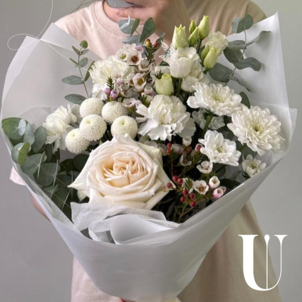 - Роза Вайт Охара, Эквадор, бело-розовая, пионовидная 50 см. - 1 шт