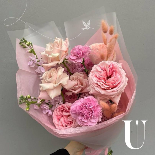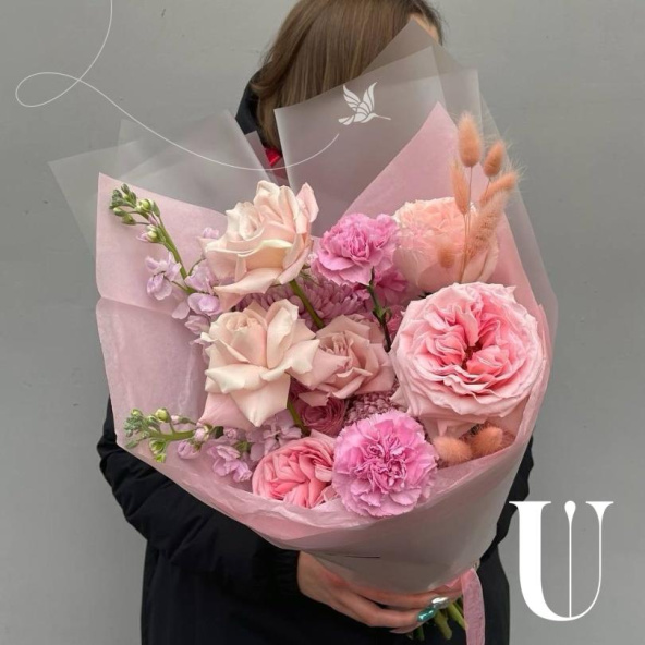 - Роза кустовая, розовая, 50 см. - 1 шт