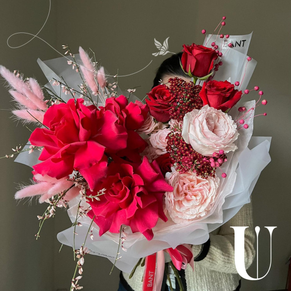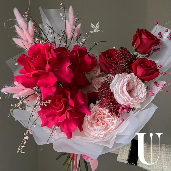 - Роза кустовая, розовая, 50 см. - 1 шт