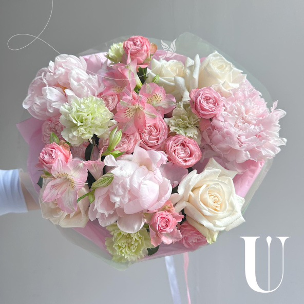 - Роза кустовая пионовидная, Бомбастик, пудровая - 3 шт