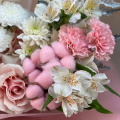 "Пастельная Симфония" — это букет для ценителей утончённой красоты, где флористика встречается с изяществом классического искусства. Он станет прекрасным подарком к торжественному событию или просто знаком восхищения.