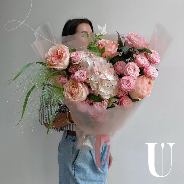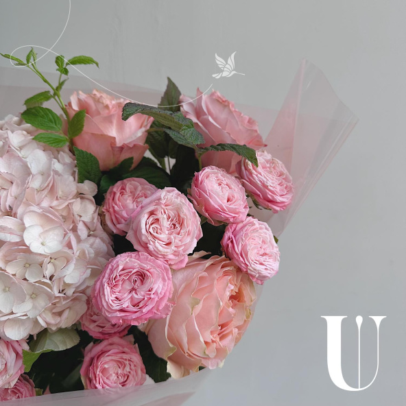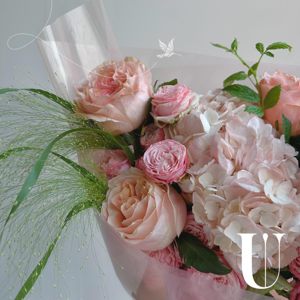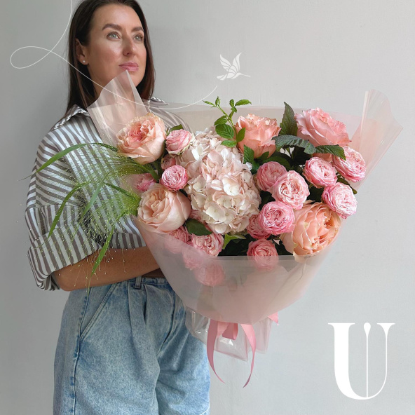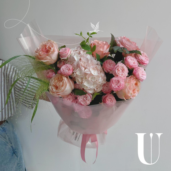 - Роза кустовая пионовидная, Бомбастик, пудровая - 3 шт