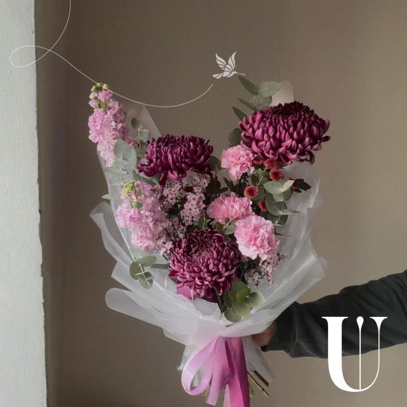 - Хризантема Бигуди, бордовая, 50 см - 3 шт