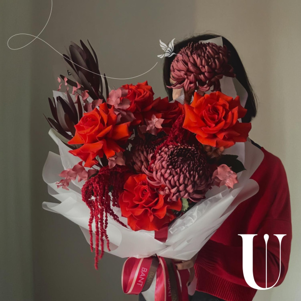- Хризантема Бигуди, бордовая, 50 см - 3 шт
