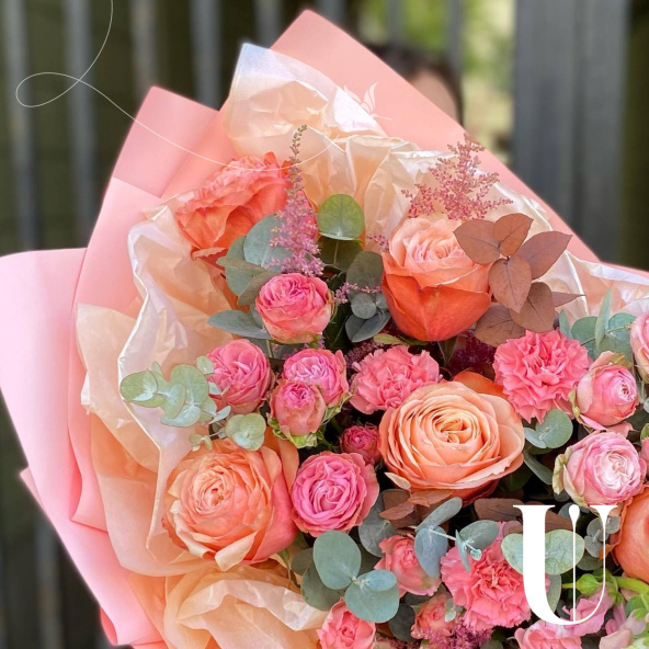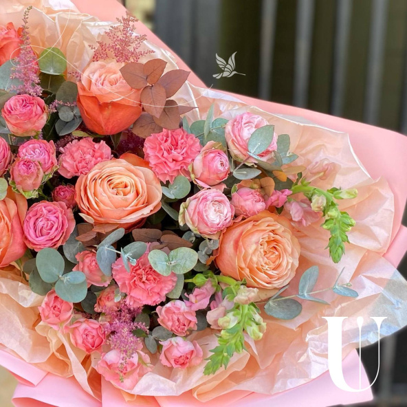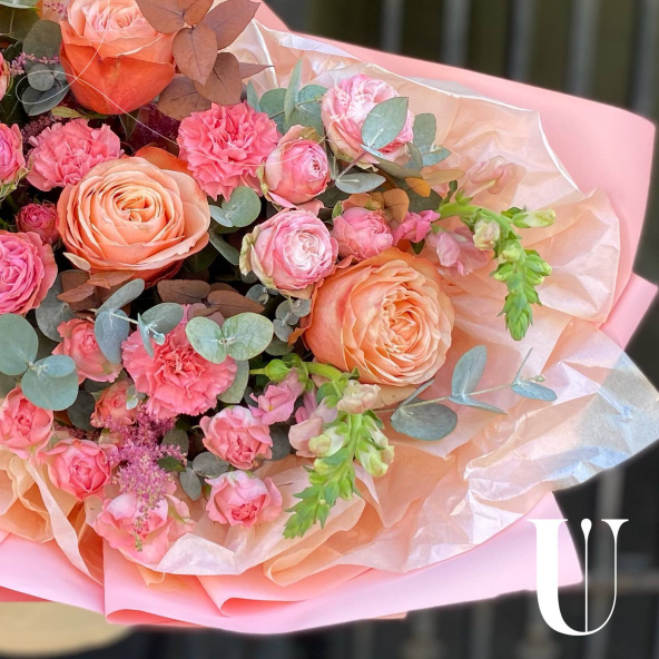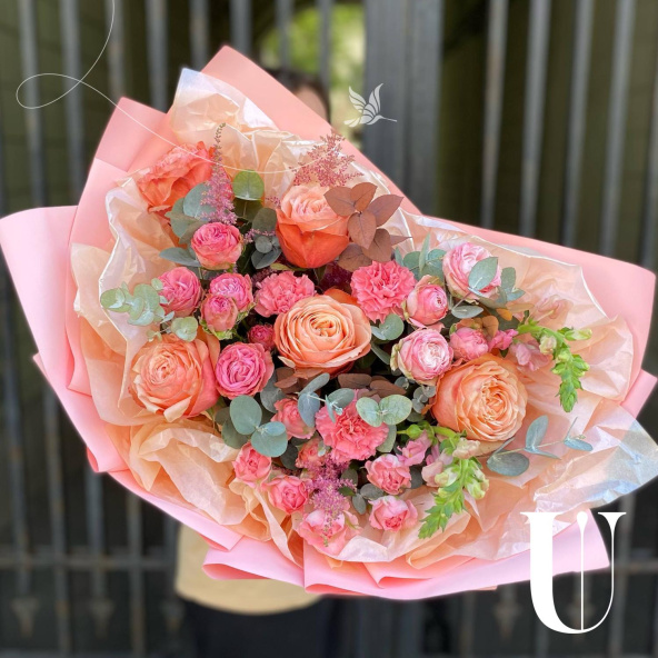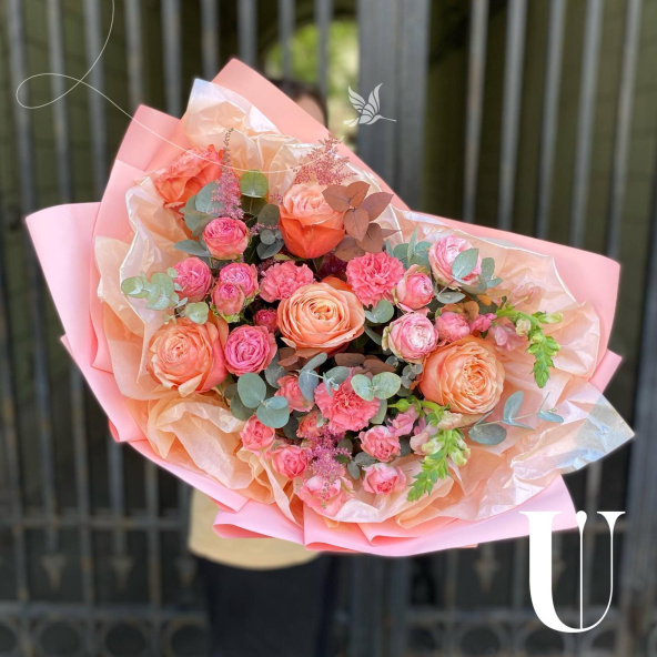 - Роза кустовая пионовидная, Бомбастик, пудровая - 3 шт