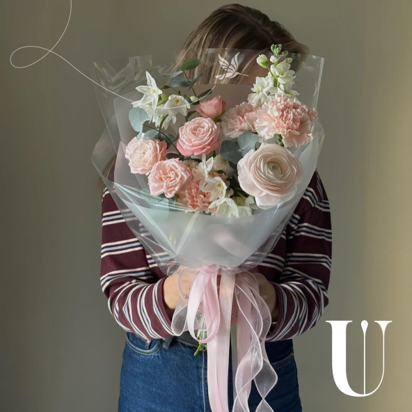 - Роза кустовая пионовидная, Бомбастик, пудровая - 1 шт
