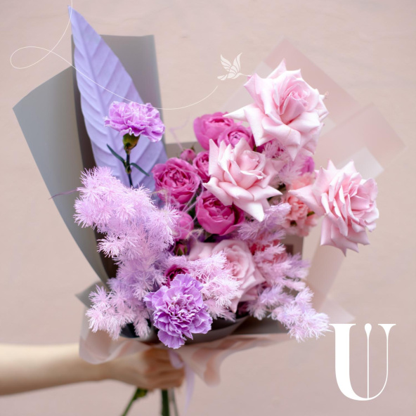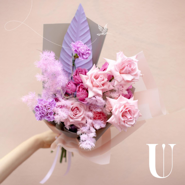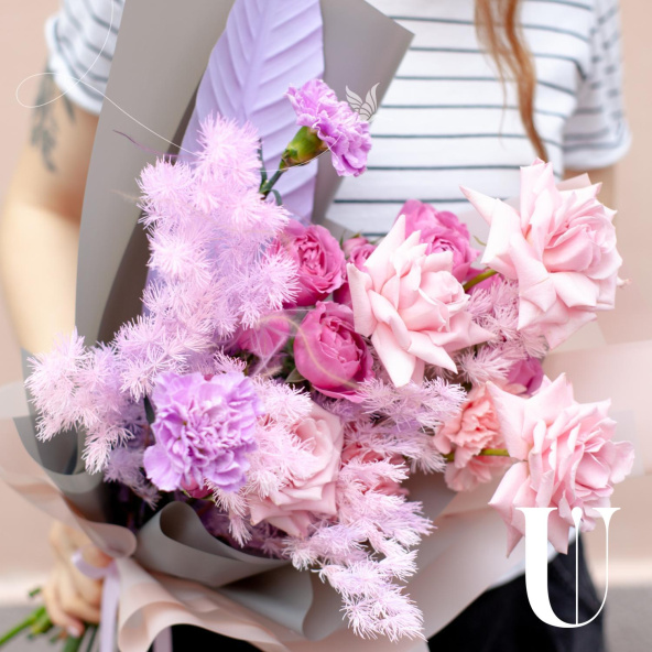 - Букет-"взрыв" в фиолетово-пудровых оттенках