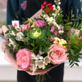 - Фрезии и зелени. Оформлено стильной упаковкой