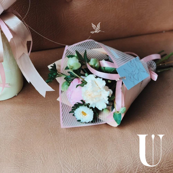 4 Пиона, 4 гвоздики, хелеборус, маттиола, амми, эвкалипт, упаковка - корейская пленка