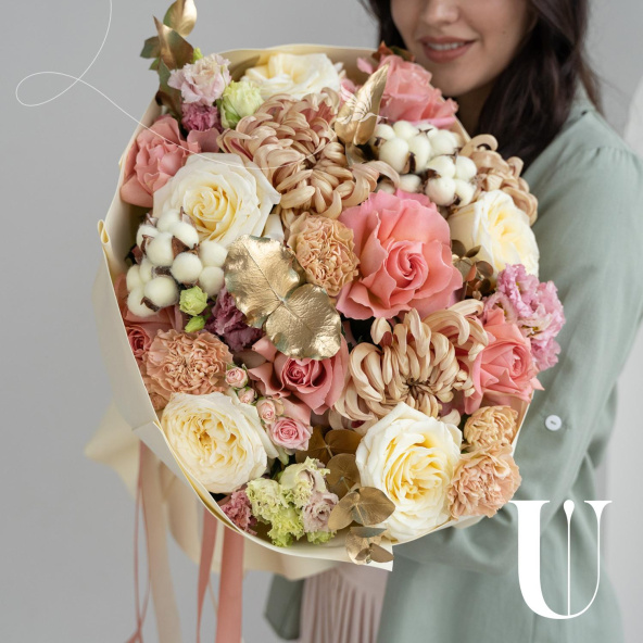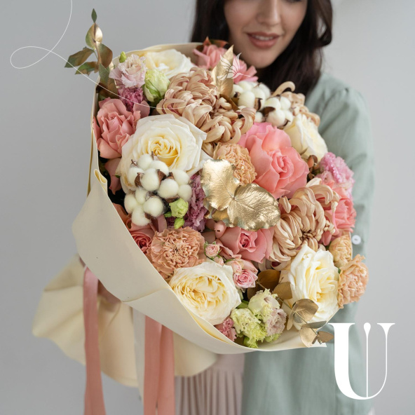 - Роза кустовая Ангелина, кремовая 50 см - 2 шт
