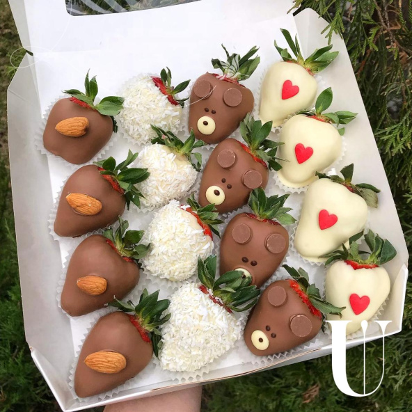 Свежая клубника в бельгийском шоколаде ( 16 штук ) с декором в подарочной коробке и пакете!
