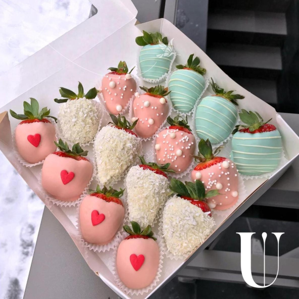 • Свежая клубника в бельгийском шоколаде (16 штук ) с декором в подарочной коробке и пакете!