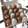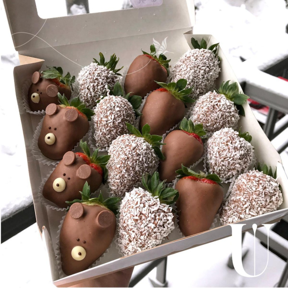 Свежая клубника в бельгийском шоколаде (16 штук ) с декором в подарочной коробке и пакете!