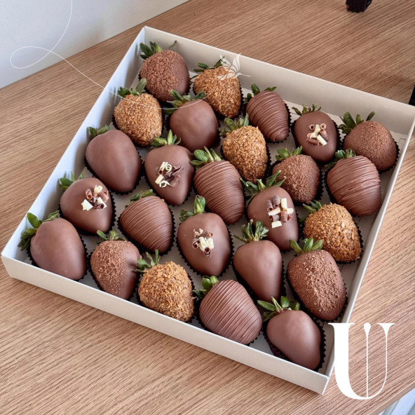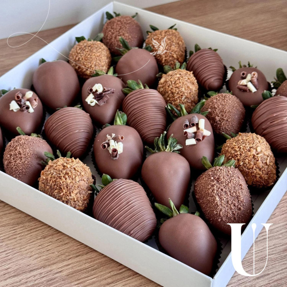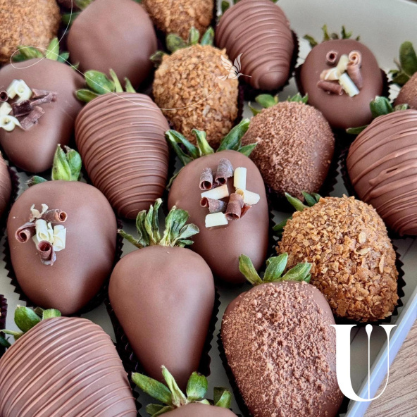 Попробуйте, как одна сочная клубника играет двумя вкусами: нежным молочным и бархатным белым шоколадом