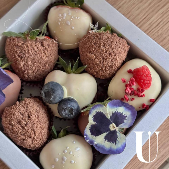 Премиум набор с добавлением свежей малины, голубики, шоколадного печенья, и конечно же сушенных цветов, да! Они съедобные! И безумно красивые