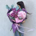 Авторский букет из орхидей, роз и тюльпанов в стильной упаковке