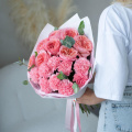 Букет в розовой гамме из одноголовых и кустовых роз в упаковке