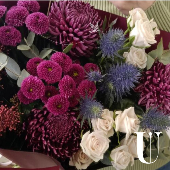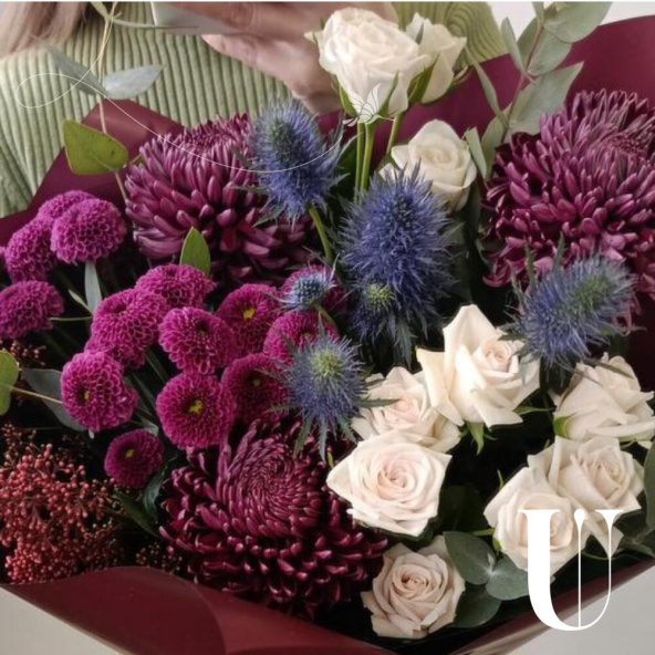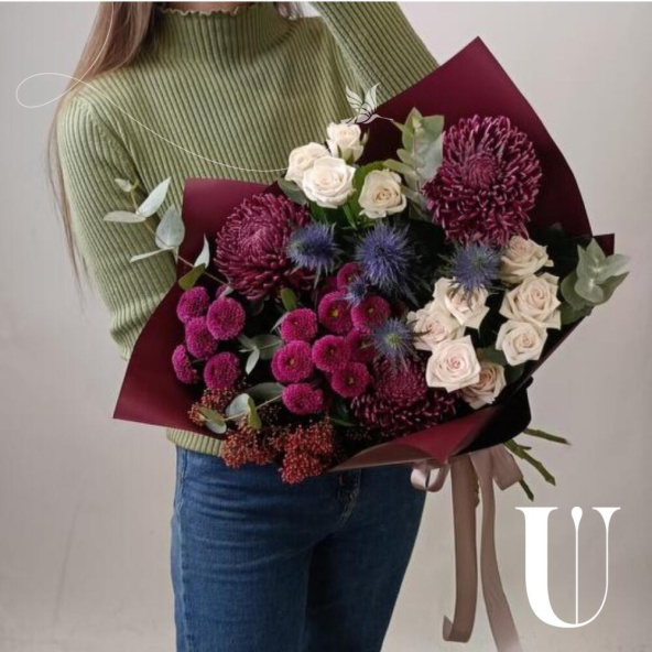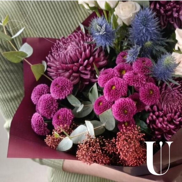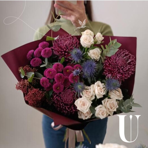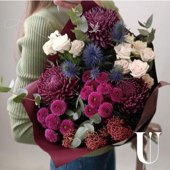 - Хризантема Бигуди, бордовая, 50 см - 3 шт