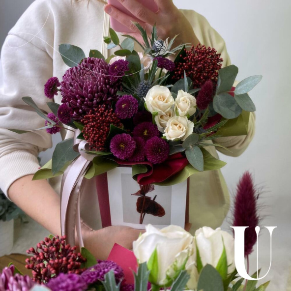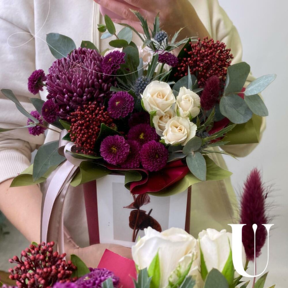 - Шляпная коробка, бордо (выс. 25 см, диам. 16 см) - 1 шт
