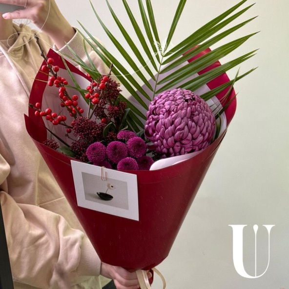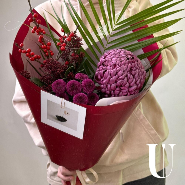- Хризантема Бигуди, бордовая, 50 см - 1 шт