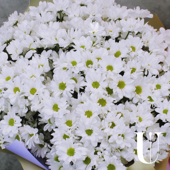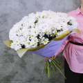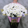 Классический букет из 25 белых кустовых ромашковых хризантем в матовой пленке с атласной лентой — это стильный и элегантный подарок для любого повода. Белые кустовые хризантемы в букете создают неповторимую нежную композицию, которая придется по вкусу даже самому искушенному получателю.