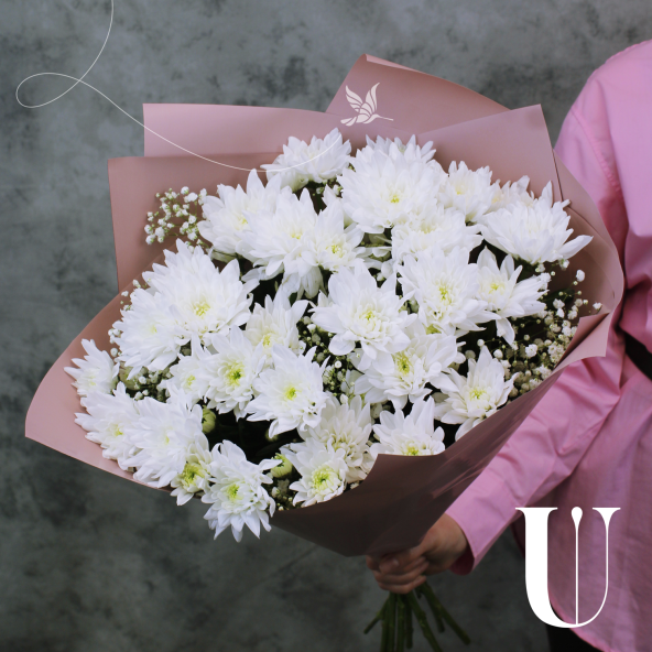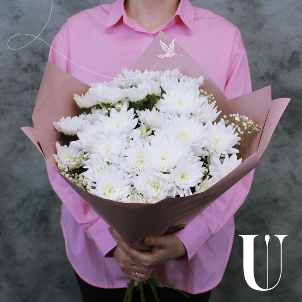Выбирая классический сборный букет из 7 белых кустовых хризантем с гипсофилой, Вы делаете прекрасный и запоминающийся подарок, который будет радовать получателя своей элегантностью и нежностью.