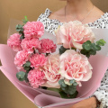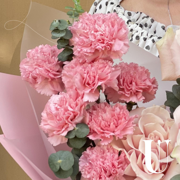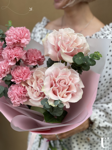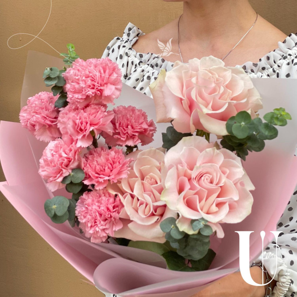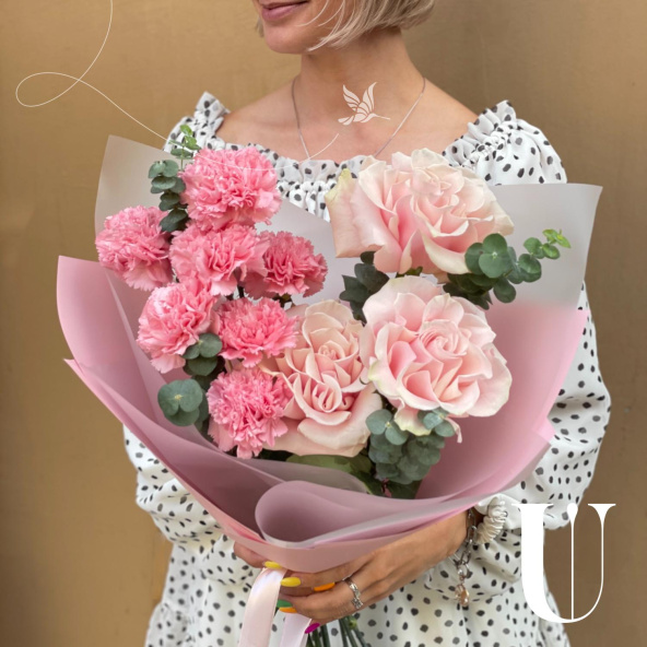 Этот нежный и романтичный букет словно танцует в ритме белых ночей Санкт-Петербурга. Французские розы нежно-розового оттенка символизируют изысканность и утончённость, словно дворцы на берегах Невы. Розовые гвоздики добавляют лёгкость и жизнерадостность, напоминая о летних вечерах в петербургских садах. А свежий эвкалипт привносит ноту благородной прохлады, как лёгкий ветерок с Финского залива.