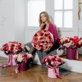 - шляпная коробка 28*30 см: роза красная - 15 шт;роза нежно-розовая - 10 шт; роза Кантри Блюз - 6 шт; роза кустовая розовая - 11 шт; роза кустовая Бомбастик - 9 шт; роза кустовая малиновая - 10 шт.