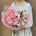 Девять розовых гвоздик, подобно стройным колоннам Исаакиевского собора, выстраивают идеальный, классический каркас композиции, символизируя прочность и вечную красоту.