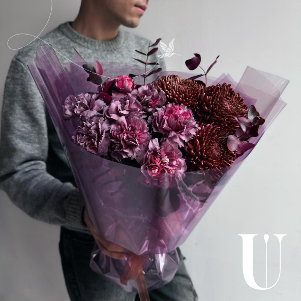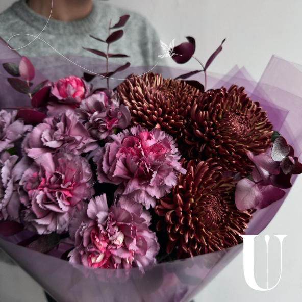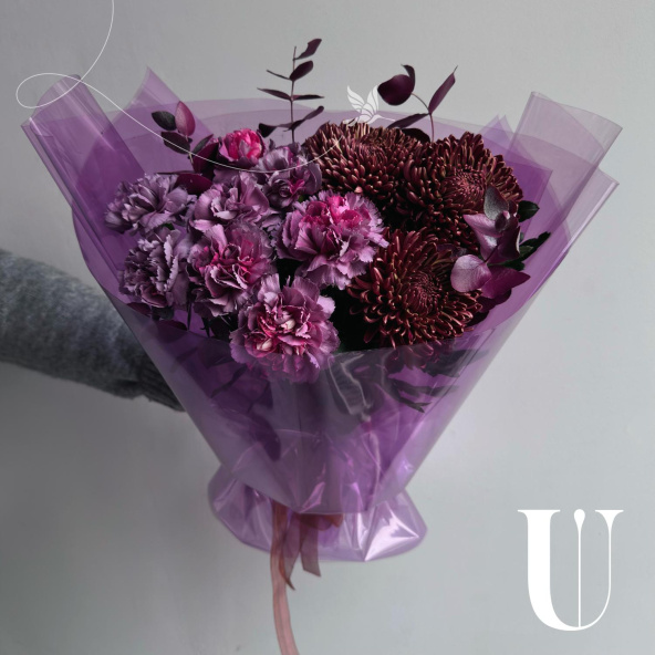 - Хризантема Бигуди, бордовая, 50 см - 3 шт