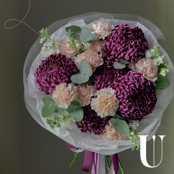 - Хризантема Бигуди, бордовая, 50 см - 5 шт