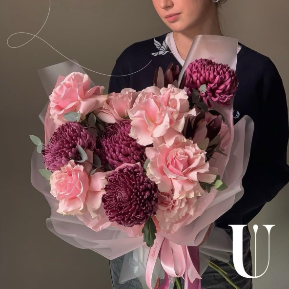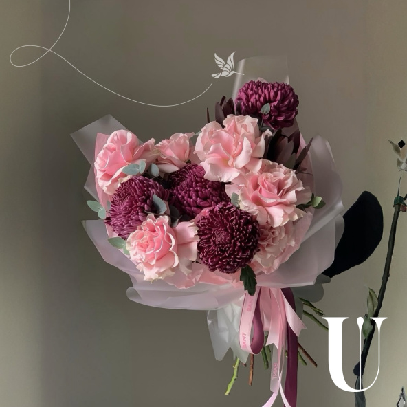- Хризантема Бигуди, бордовая, 50 см - 5 шт