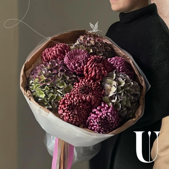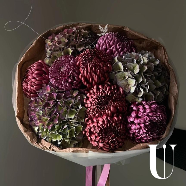 - Хризантема Бигуди, бордовая, 50 см - 7 шт
