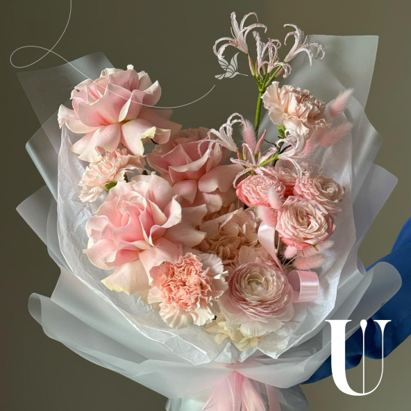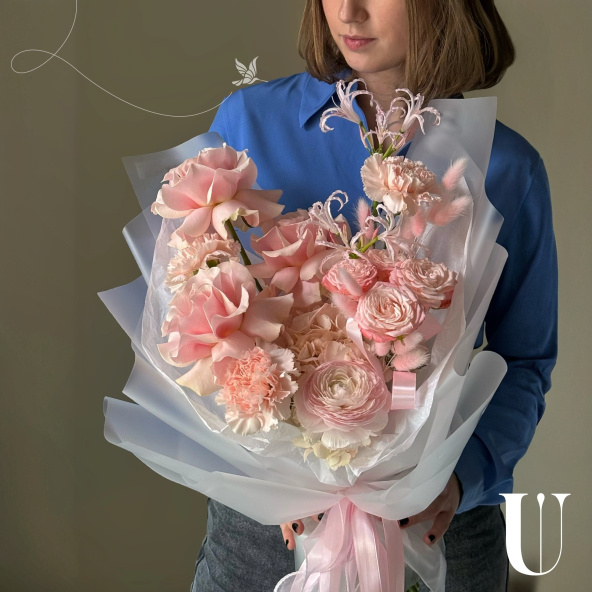 - Роза кустовая пионовидная, Бомбастик, пудровая - 1 шт