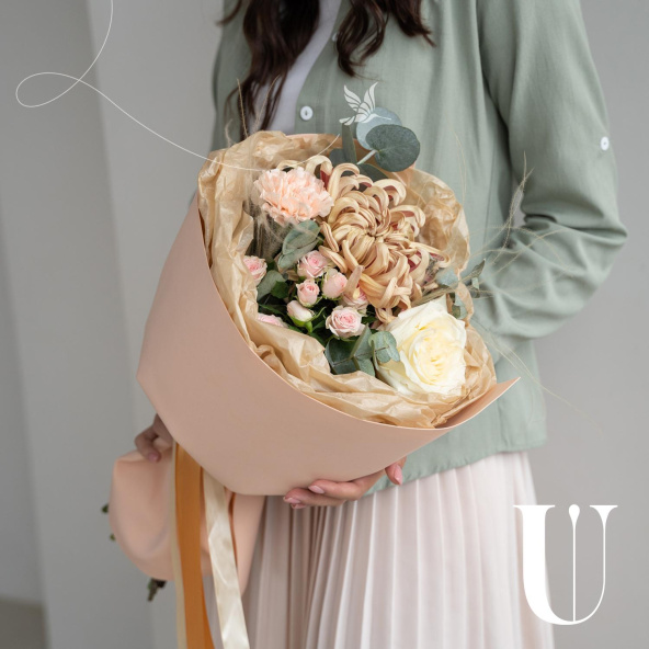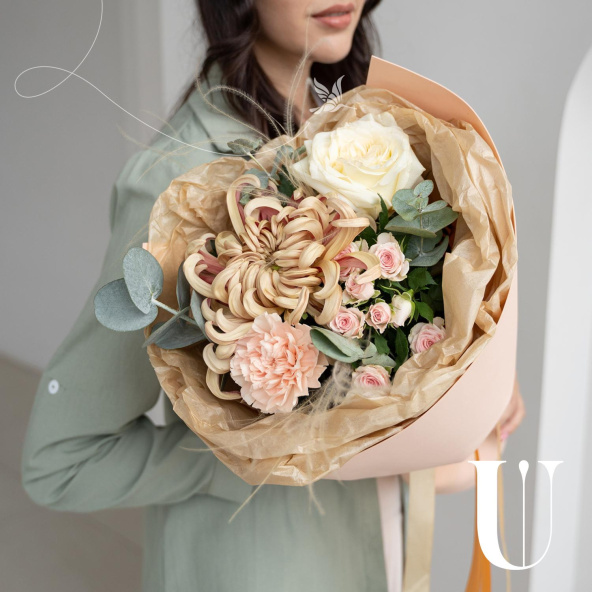 - Роза кустовая пионовидная, Бомбастик, нежно-розовая, 50 см. - 1 шт