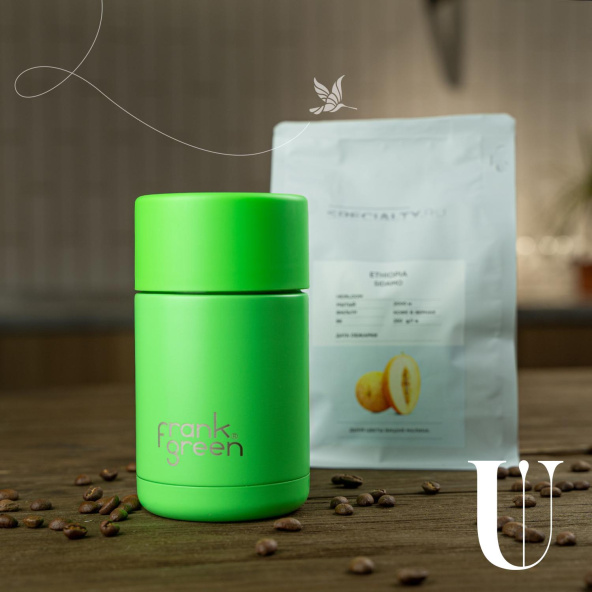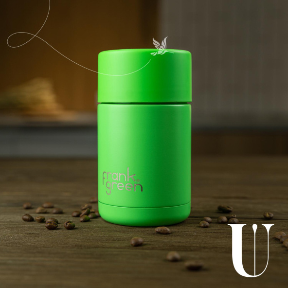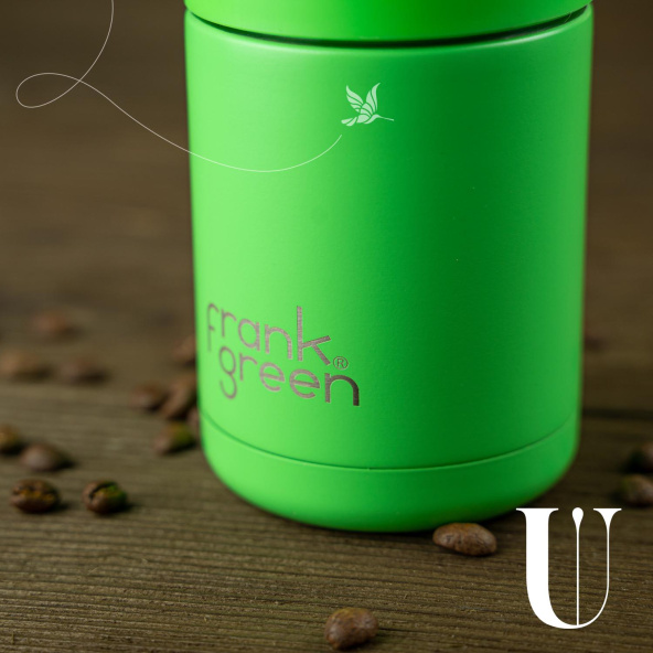 Термокружка Ceramic reusable cup Австралийского бренда Frank Green, 295 мл, цвета зеленый неон - тройные стенки с вакуумной изоляцией, керамический внутренний слой и внешний слой из нержавеющей стали для максимального контроля температуры, чтобы держать напитки горячими или холодными в течение нескольких часов, кнопочный механизм питейника, не впитывает запахи и устойчив к появлению пятен
