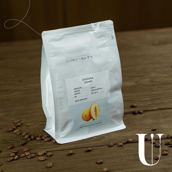 1. Ethiopia Sidamo Gr. 2 - обработка мытая, высота выращивания 2000 м., дискрипторы: дыня, вишня, малина. Оценка Q-грейдера 86 SCA. 250гр