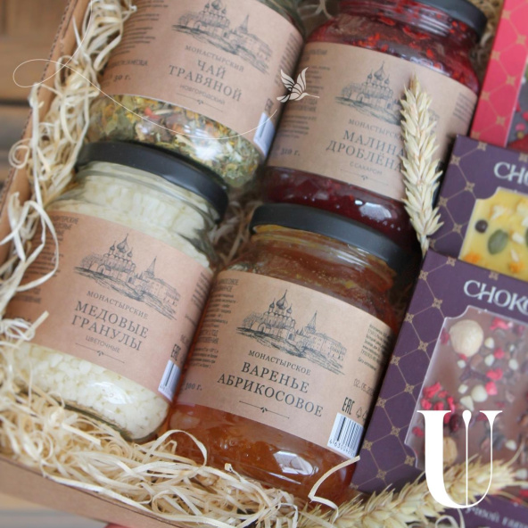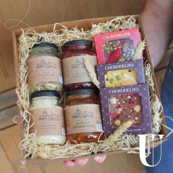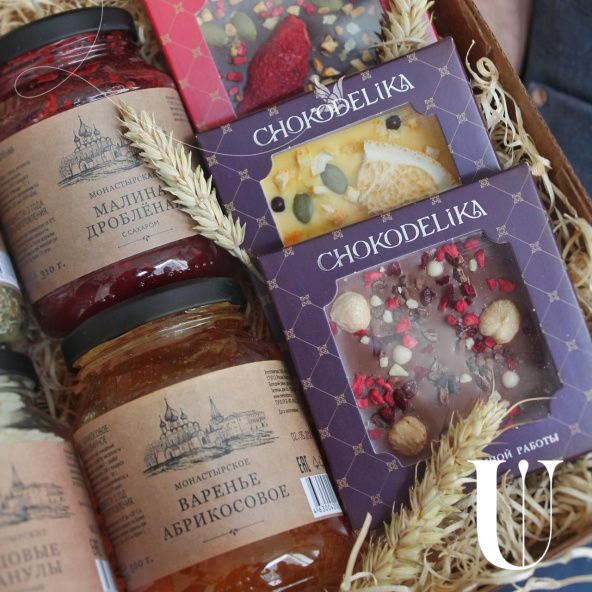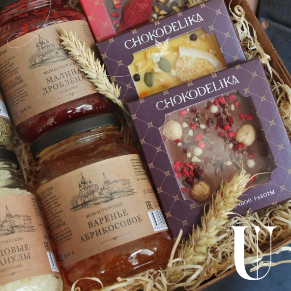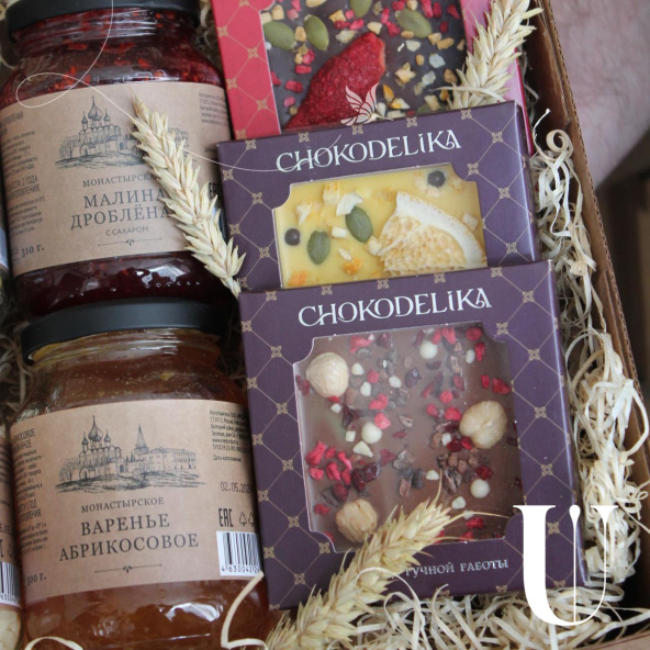 Подарочный набор из двух видов сыра, джема и шоколада ручной работы