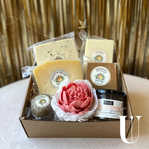 Подарочный набор с сыром и свечой «Уют» от Сыроварни Костанян станет отличным презентом в качестве благодарности для близкого и важного человека. В данный набор мы положили крафтовые сыры, сделанные вручную с любовью ❤️