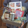 Подарочный набор из шоколада ручной работы, чая и хлебцов в деревянном ящике
