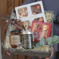 Подарочная корзина из паштета, сыра, колбасы и шоколада ручной работы