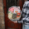 Подарочный набор из трех видов сыра, колбасы салями и джема