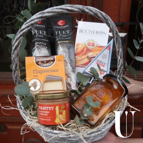 Подарочный набор из 4 видов сыра, меда и фруктового соуса