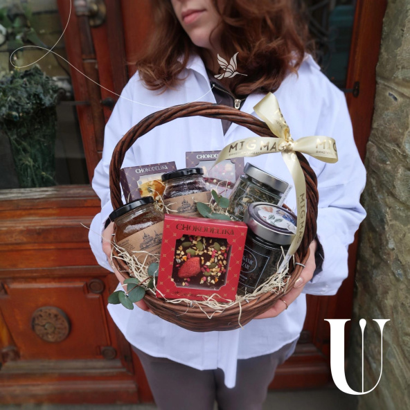 Подарочный набор из двух видов сыра, шоколада, оливок и колбасы салями