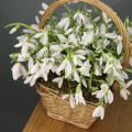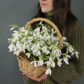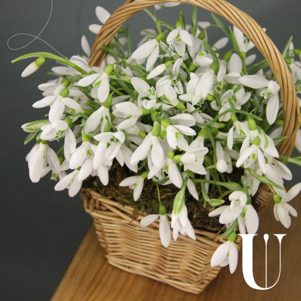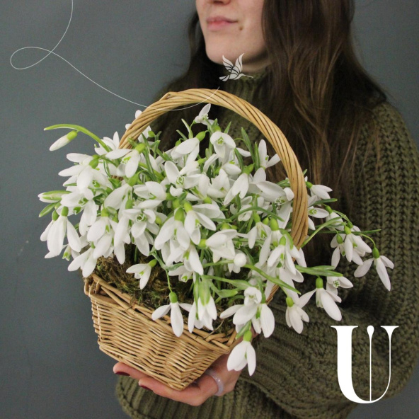 Розовые лизиантусы и бело-золотистые розы в бежевой корзине