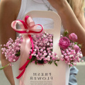 Композиция из розы Мондиаль, оранжевого диантуса и белой альстромерии в корзине